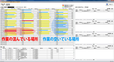 ビット生産管理ツールを導入すると、工場ごと、あるいはグループごとの作業負荷が一目で分かるようになります。